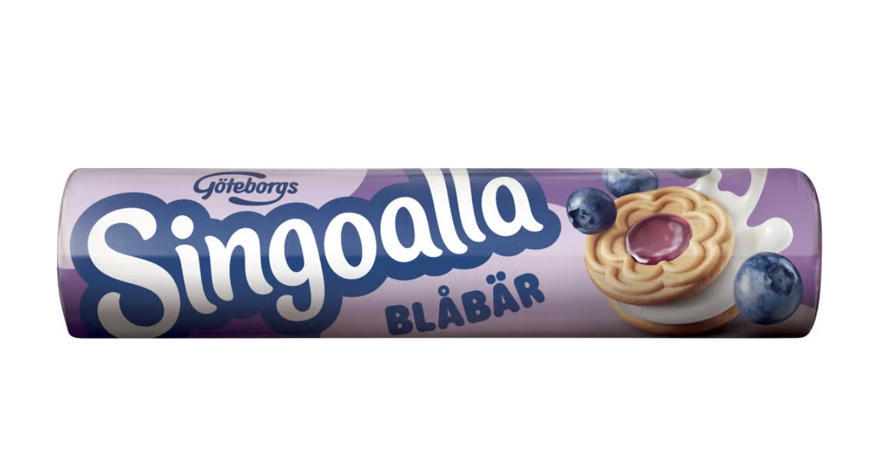 VETEMJÖL/HVEDEMEL, kräm med vaniljsmak 23 % (socker, fullhärdat kokosfett, emulgeringsmedel (lecitin), surhetsreglerande medel (citronsyra), arom (vanillin)), blåbärsfyllning 14 % (socker, glukossirap, vatten, blåbärsjuicekoncentrat 4,9 %, geleringsmedel (karragenan), aromer), socker, solrosolja, invertsocker, bakpulver/hævemiddel (natriumbikarbonat, hjorthornssalt E503), emulgeringsmedel (lecitin), salt, aromer. Kan innehålla spår av HASSELNÖTTER/HASSELNØDDER och MJÖLK/MÆLK. *För info om vilken olja som använts se www. goteborgskex. se/ravaror.