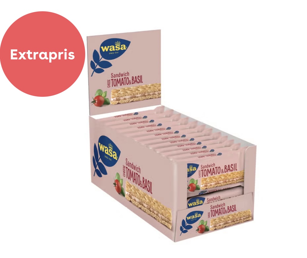VETEMJÖL/HVETEMEL 58%, vegetabiliskt fett (raps, shea), OSTPULVER/OSTEPULVER 9,0%, maltodextrin/maltodekstrin, KÄRNMJÖLKSPULVER/KJERNEMELKPULVER, jäst/gjær, socker/sukker, naturlig arom/aroma (MJÖLK/MELK), salt, torkad tomat 0,7%, torkad basilika/basilikum 0,02%. KAN INNEHÅLLA SPÅR AV SESAMFRÖN, SOJABÖNOR OCH LUPIN./KAN INNEHOLDE SPOR AV SESAMFRØ, SOYABØNNER OG LUPIN.