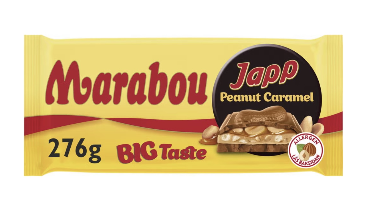 Marabou Big Taste Japp Peanut Caramel är en mjölkchokladkaka med krämig karamell och jordnötskräm som passar för alla tillfällen. Genom Cocoa Life, vårt program för en hållbar kakaoproduktion, bidrar Marabou till att kakao odlas på rätt sätt, för att skydda planeten och respektera mänskliga rättigheter i vår värdekedja. Läs mer om Cocoa Life här www.cocoalife.org.